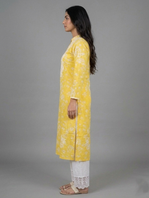 Lime Green Chikankari Kurti with Plazo Bottom Net