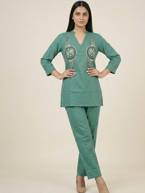 Pure Cotton Pastel Green Embroidery Co-ord Set