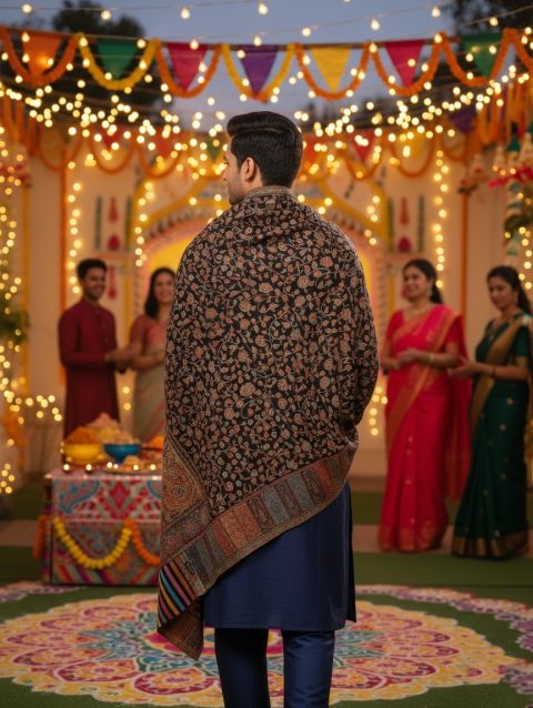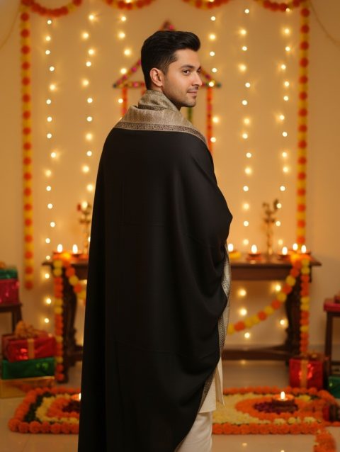 Men’s Black and Golden Pashmina Shawl (Lohi)