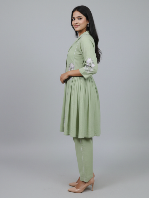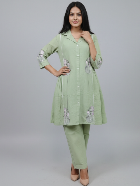 Pure Cotton Pastel Green Embroidery Co-ord Set