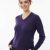 A long-sleeved, fitted V-neck sweater. A deep, rich shade of purple Long sleeves that look to be straight or slightly fitted.The cuffs and possibly the bottom hem have a rib-knit finish, which helps the garment hold its shape.ย