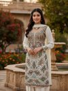 Grab this beautiful Gajri colour suit with multi thread embroidery on cotton fabric. Beautiful Green and Red contrast embroidery with detailing of Gota patti.