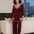 Dark Pink Velvet Embroidered Kurta Set with Pants