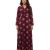 a deep burgundy or maroon base color floor-length maxi dress all-over floral print.