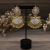 These magnificent earrings feature a beautiful contrast between their rich, gold-toned base and prominent marbled white stones, likely mother-of-pearl. The elaborate design combines two main sections, accented with sparkling clear stones in a Kundan-style setting. The lower, crescent-shaped element is finished with intricate filigree metalwork and a lively fringe of tiny gold accent beads. This statement piece is perfect for adding regal, traditional elegance to any festive or bridal look.