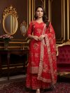 ADD Presents Printed Gorgeous Grey pant suit with printed green contrast organza dupatta with Banarasi weaving work to give a royal look