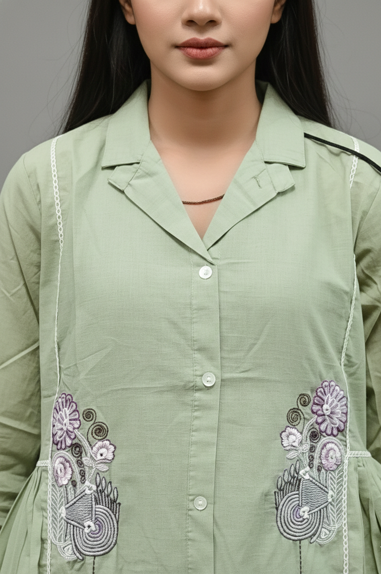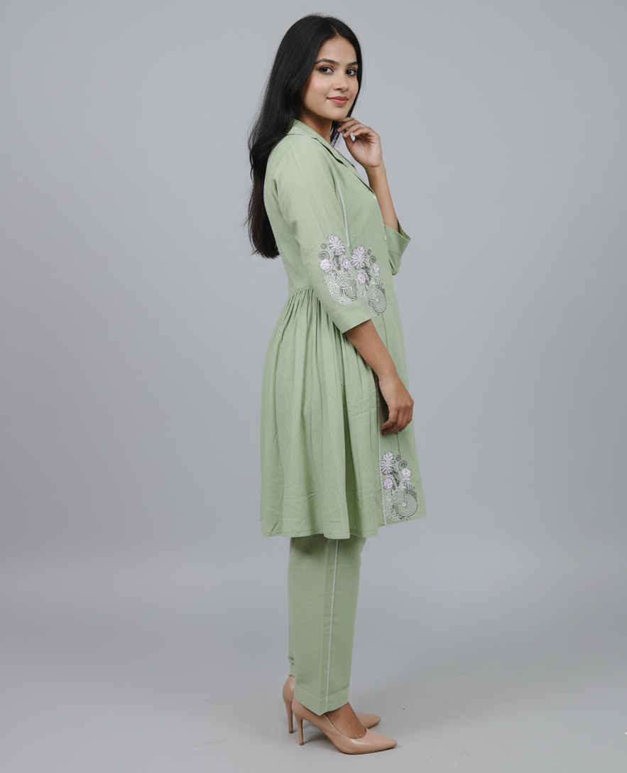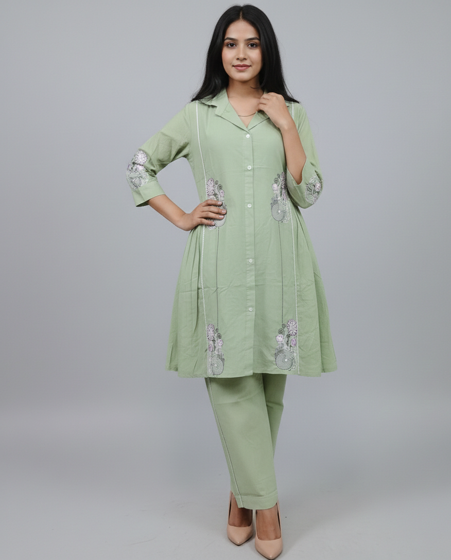 Pure Cotton Pastel Green Embroidery Co-ord Set