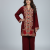 a women’s maroon embroidered co-ord set. a wool blend or heavy cotton, often associated with Kashmiri Aari embroidery, making it suitable for cooler weather.