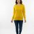 a mustard yellow V-neck sweater for women. long sleeves and a small, subtle logo on the chest.